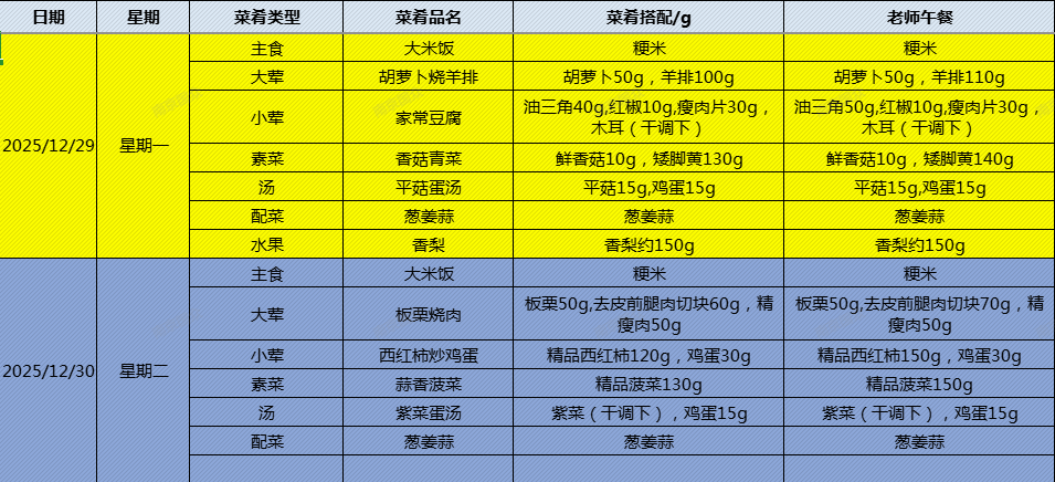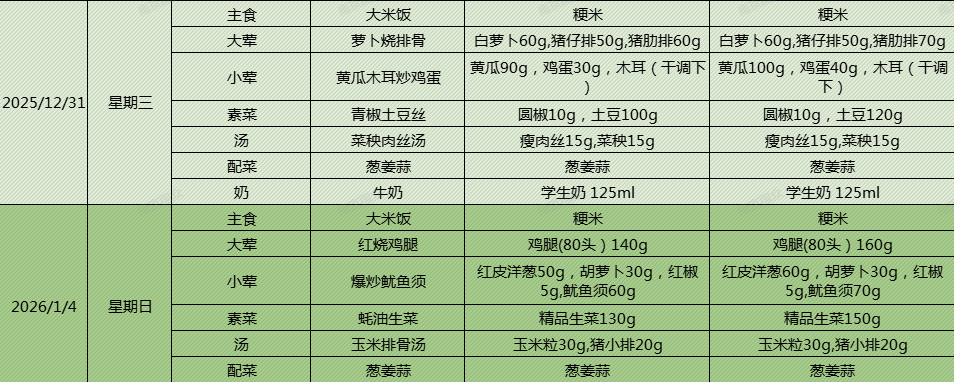 上坊小学第十八周学生食谱