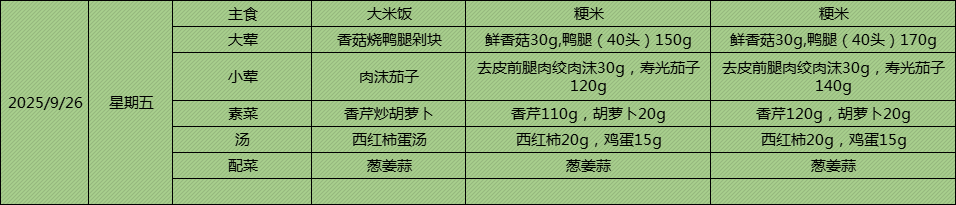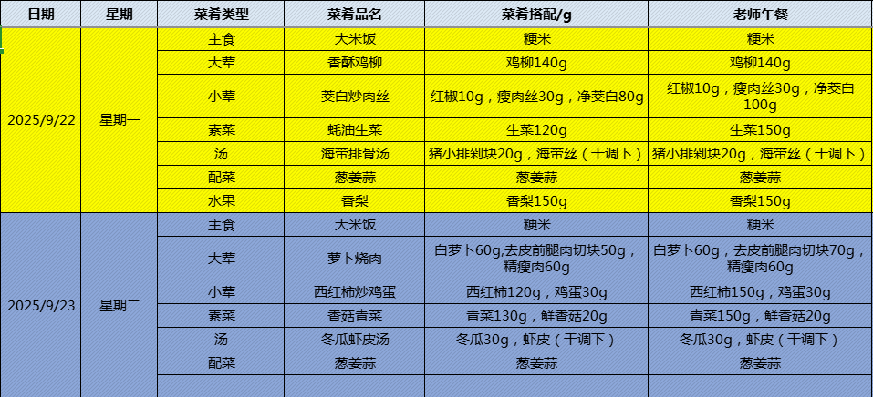 上坊小学学生第四周菜谱