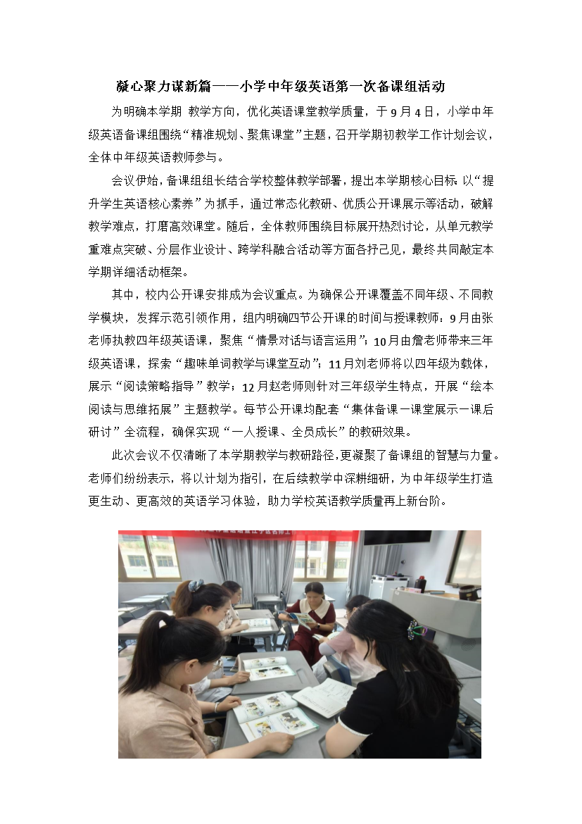凝心聚力谋新篇——小学中年级英语第一次备课组活动