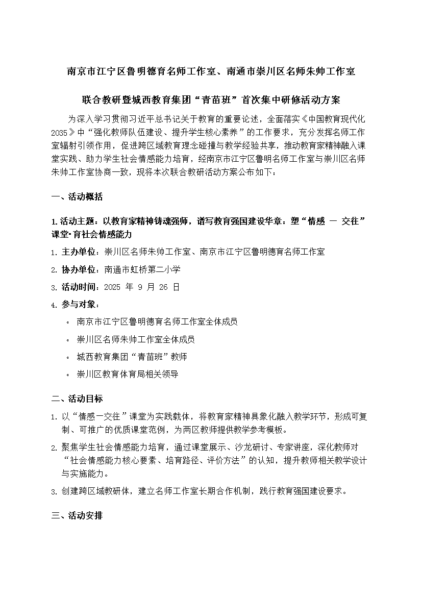 “情感 — 交往”课堂?育社会情感能力活动通知