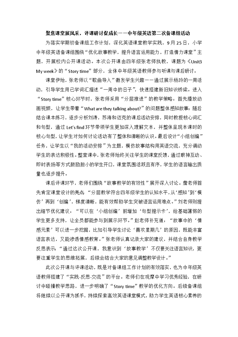 聚焦课堂展风采,评课研讨促成长——中年级英语第二次备课组活动