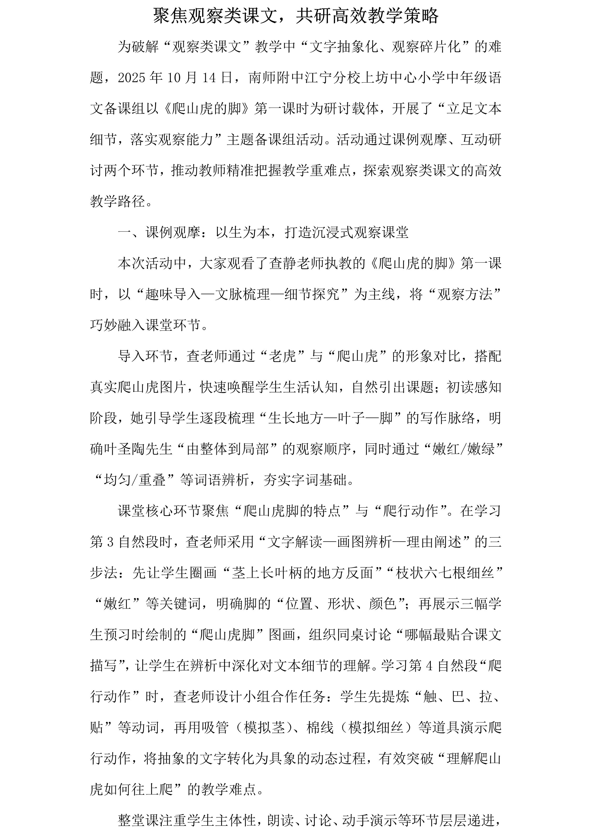 发表日期:2025/10/14 16:14:21 出处:江宁区上坊中心小学 作者:郑九洲 有102位读者读过