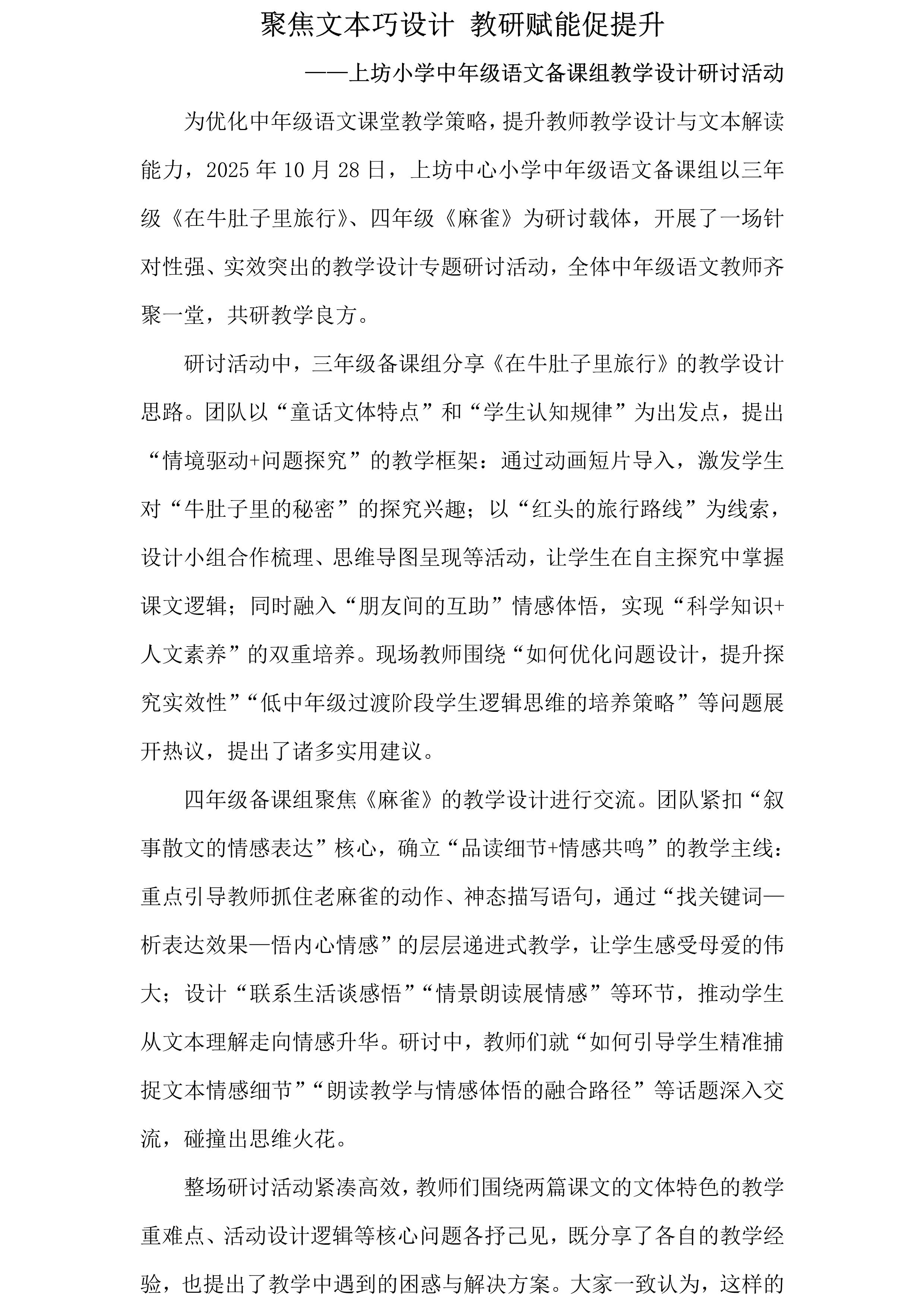 聚焦文本巧设计 教研赋能促提升