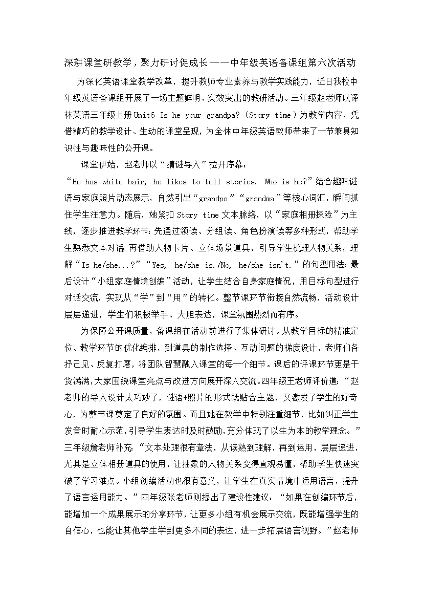 深耕课堂研教学,聚力研讨促成长——中年级英语备课组第六次活动