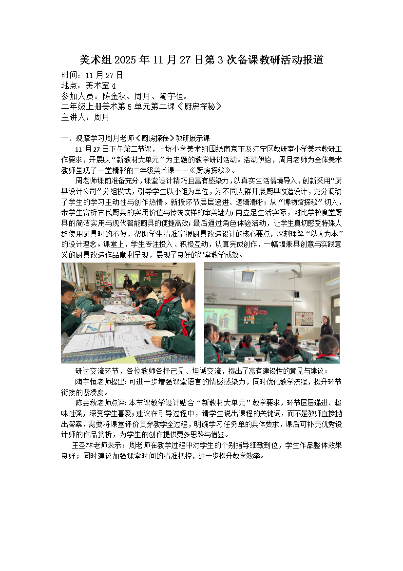 践行情力课堂 放飞想象翅膀——《厨房探秘》一课的教学实践研究